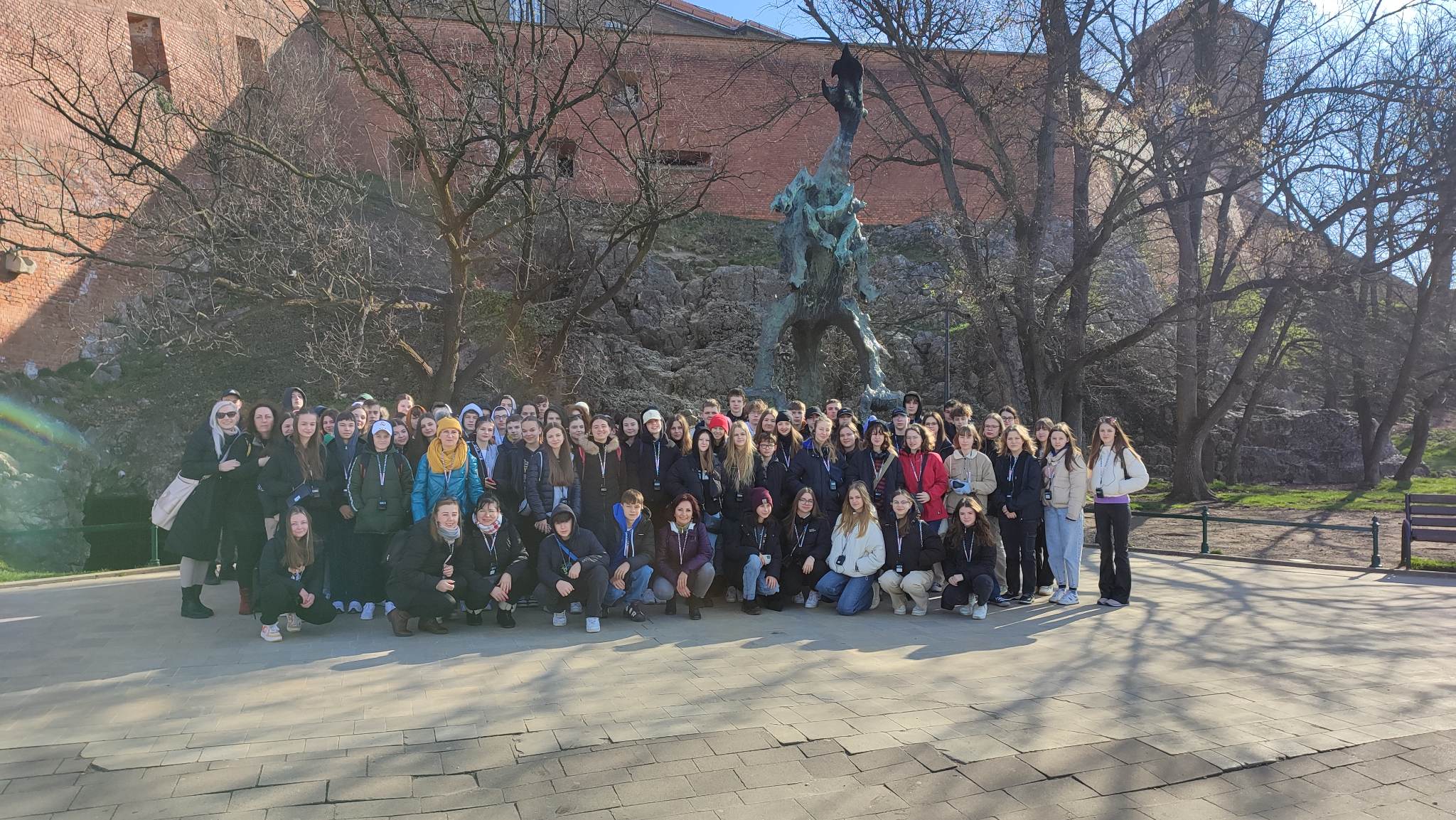 Žiaci fotografovali všetko, čo ich zaujalo, preto bola vyhlásená súťaž o najkrajšiu fotografiu historickej pamiatky. Hodnotil sa nápad a spracovanie. O tejto súťaži budeme všetkých informovať po veľkonočných prázdninách. Popoludní sme sa presunuli do Osvienčimu (nem.Auschwitz) v Malopoľskom vojvodstve. Počas 2.svetovej vojny bolo mesto pričlenené k Nemeckej ríši a bol tu vybudovaný najprv koncentračný tábor Auschwitz I a neskôr na druhej strane mesta rozsiahly vyhladzovací tábor Auschwitz II – Birkenau (Brzezinka). Je to miesto plné bolesti a utrpenie miliónov Židov. Na tvárach našich žiakov bolo vidieť vážnosť, smútok i zdesenie. Po prehliadke sa všetci zastavili pri Múre smrti a položili tam smútočné kytice a zapálili kahance, aby si uctili pamiatku tých, ktorí tu zomreli. Druhý deň sme vyrazili do Krakova, ktoré je druhým najväčším mestom Poľska. Mesto počas 2.svetovej vojny nebolo bombardované, keďže sa tu presťahovali nemeckí vojaci. Staré mesto je charakteristické početnými historickými stavbami: hrad Wawel, Jagelovská univerzita či Poľská akadémia vied. Nádherné boli aj kostoly. Žiaci si prešli aj bývalú židovskú štvrť. Celý deň v Krakove i s osobným voľnom na obed i nákupy si žiaci užili. Tretí deň pokračoval návštevou soľnej bane vo Vieličke asi 15 km od Krakova, ktorá je ako poľská perla ukrytá v podzemí. Od roku 1978 je zapísaná na zozname svetového dedičstva UNESCO a mapuje ťažbu soli od stredoveku až do súčasnosti. Prehliadka trvala 2,5 hodiny a začínala zostupom po 380 drevených schodoch. Turistická trasa meria okolo 3 km a postupne sa po schodoch klesá až do 135 m. Po ceste sme videli techniku, pomocou ktorej sa soľ niekedy ťažila, postavy baníkov pri práci, drevené konštrukcie i kaplnky, jazierka so soľankou, zdobené sály, soľnú sochu Kopernika. Asi najkrajšou a najväčšou sálou bola kaplnka sv. Kingy 101 m pod zemou. Okrem nádherných soľných lustrov tu boli sochy a reliéfy vytesané do stien – vlys Poslednej večere pána podľa obrazu Leonarda da Vinciho. Dotknúť sa sochy, stien v chodbách a následne prst obliznúť niektorí neodolali a potvrdili, že ide skutočne o soľ. Dozvedeli sme sa, že toto miesto je vyhľadávané aj pármi, ktoré si túžia povedať svoje áno na netradičnom mieste. Cestou k autobusu si všetci kúpili čerstvé krovky – tradičný poľský druh sladkosti s karamelovou príchuťou. Vo večerných hodinách sme si oddýchli v čokoládovni, kde si niektorí dali fantastické palacinky ozdobené ovocím a kúpili si pralinky i čokolády pre svojich blízkych. V neskorých večerných hodinách dva autobusy dorazili ku škole, kde sme žiakov odovzdali rodičom. Bola to náročná cesta, z ktorej sme sa bezpečne vrátili všetci domov.