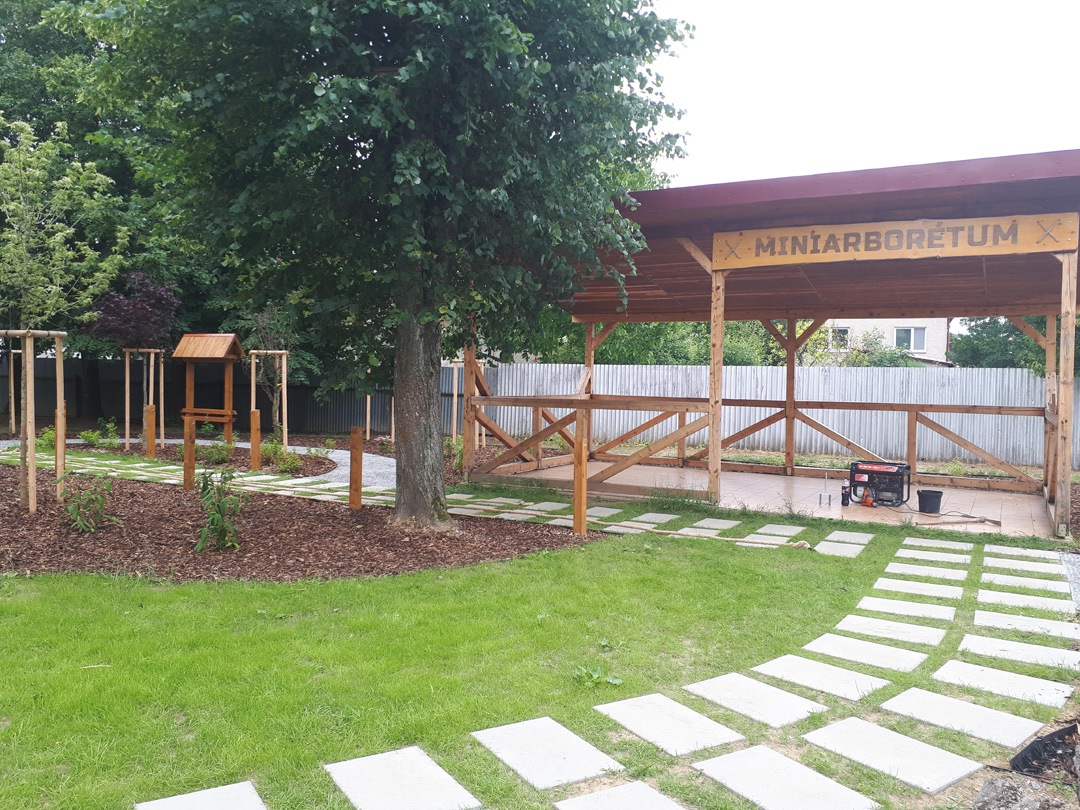 MINIARBORÉTUM: je najväčšou senzáciou areálu našej školy. Žiaci môžu sledovať vyrastať flóru 3 dendroflór (Európy, Severnej Ameriky a Ázie) na jednom mieste. Sprievodné tabule pri jednotlivých taxónoch sú potrebnou pomôckou spoznania jednotlivých cudzokrajných druhov flóry. Žiaci môžu pozorovať ich odlišnosti a podobnosti v detailoch, čo je jedinečnosťou v našich podmienkach.