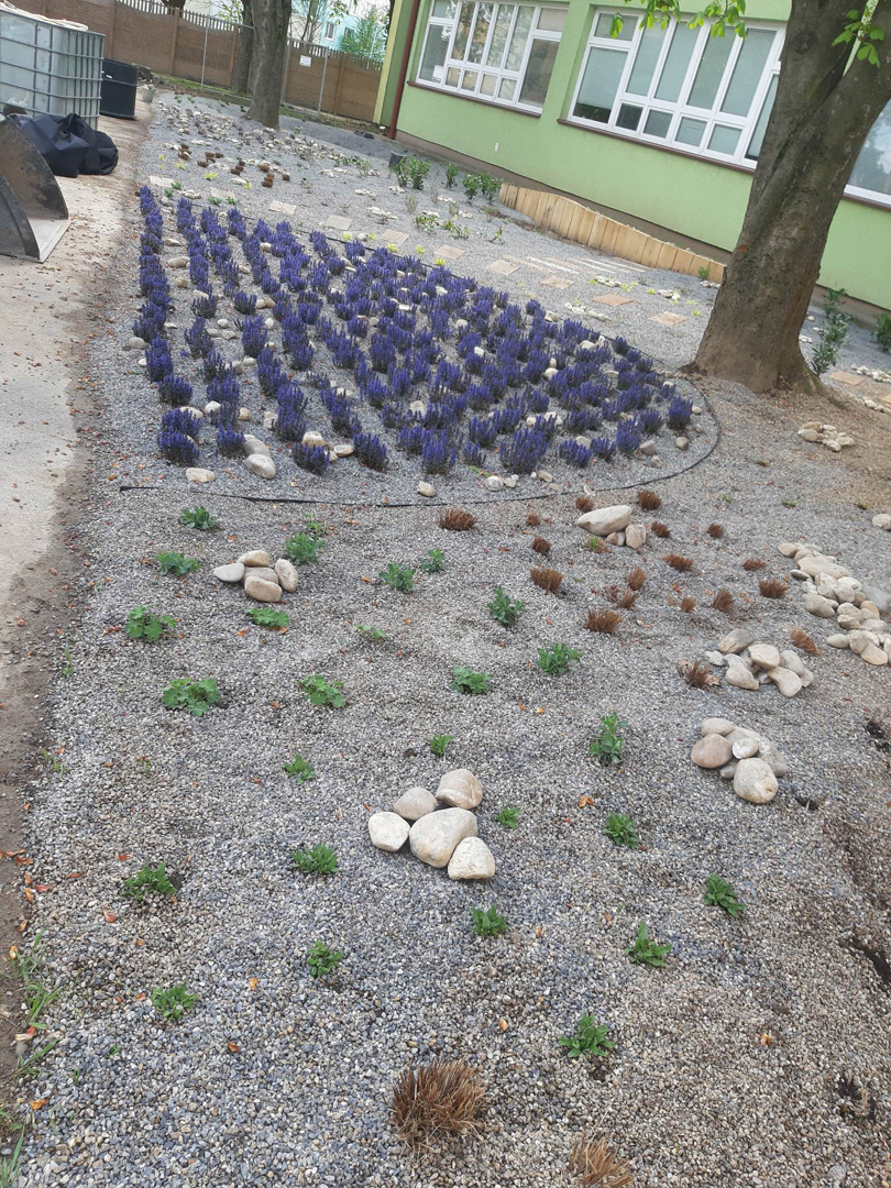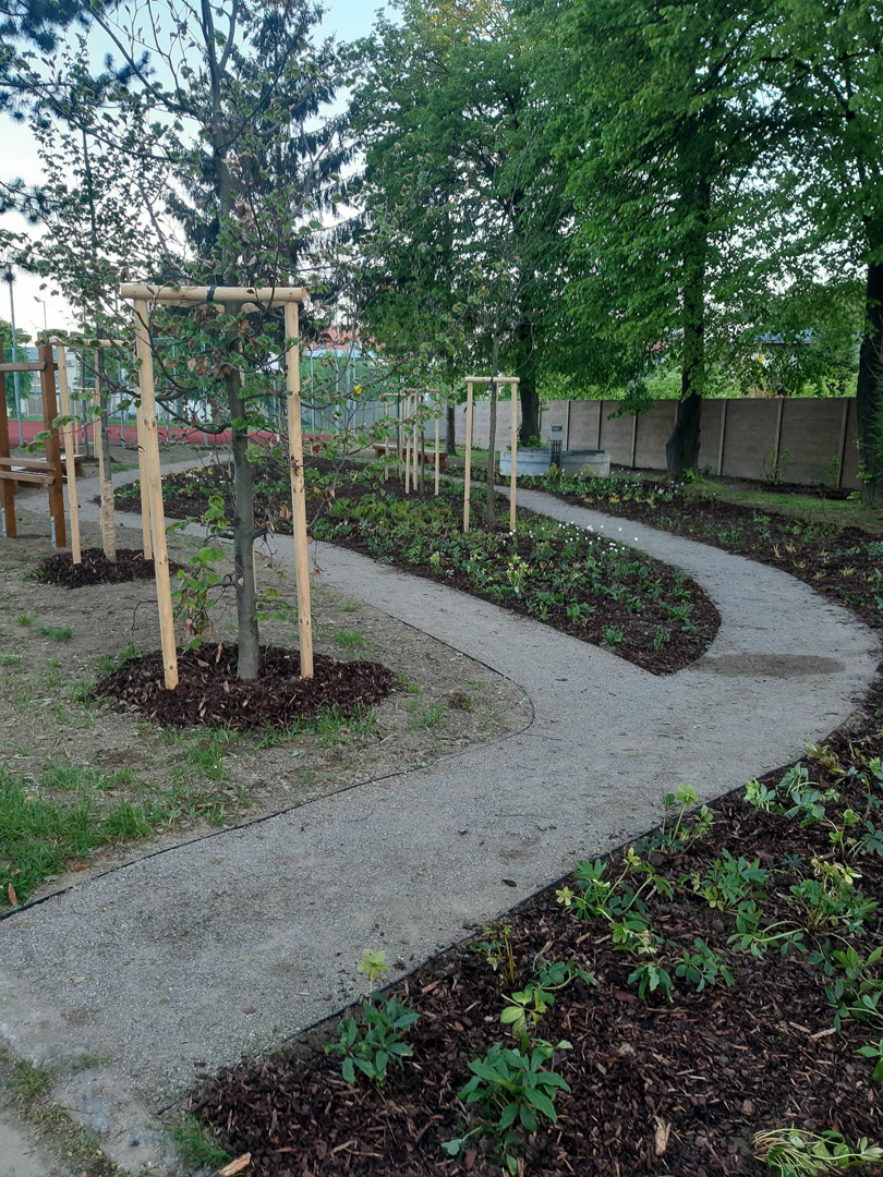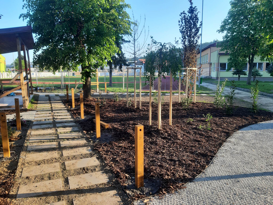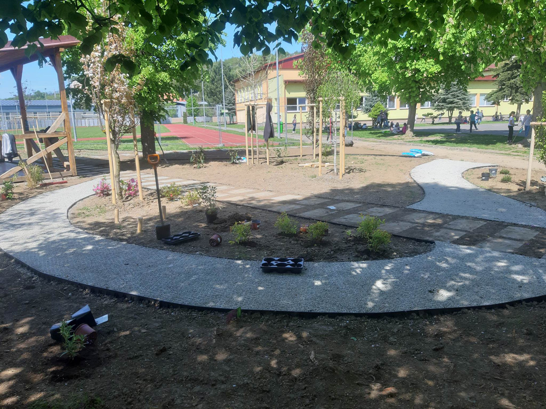 Zrevitalizovali sme 1 083 m2 areálu školského dvora a vysadili sme: