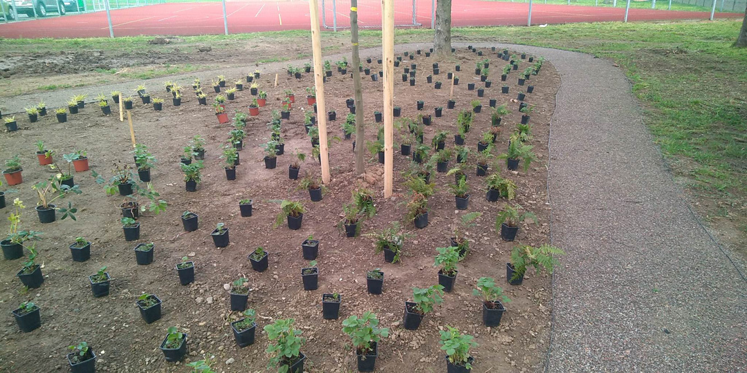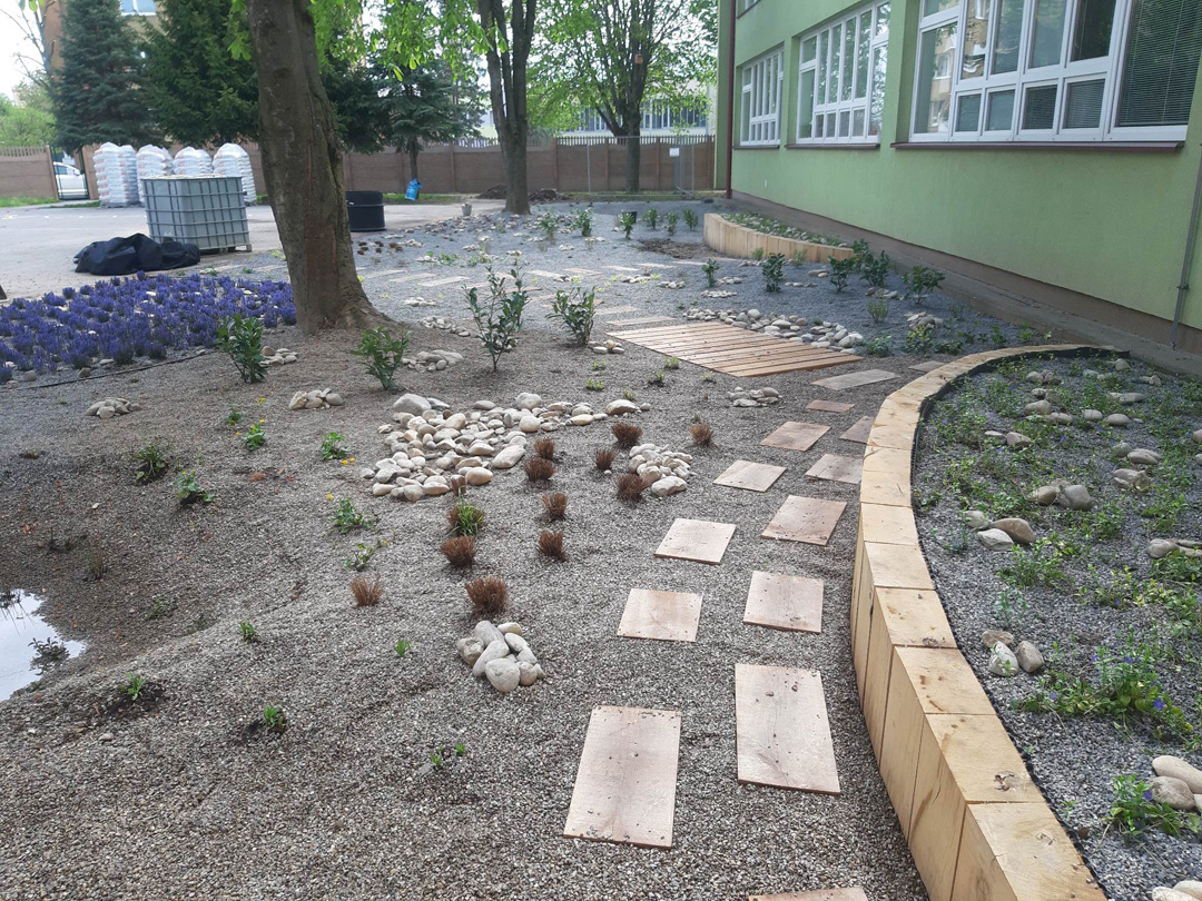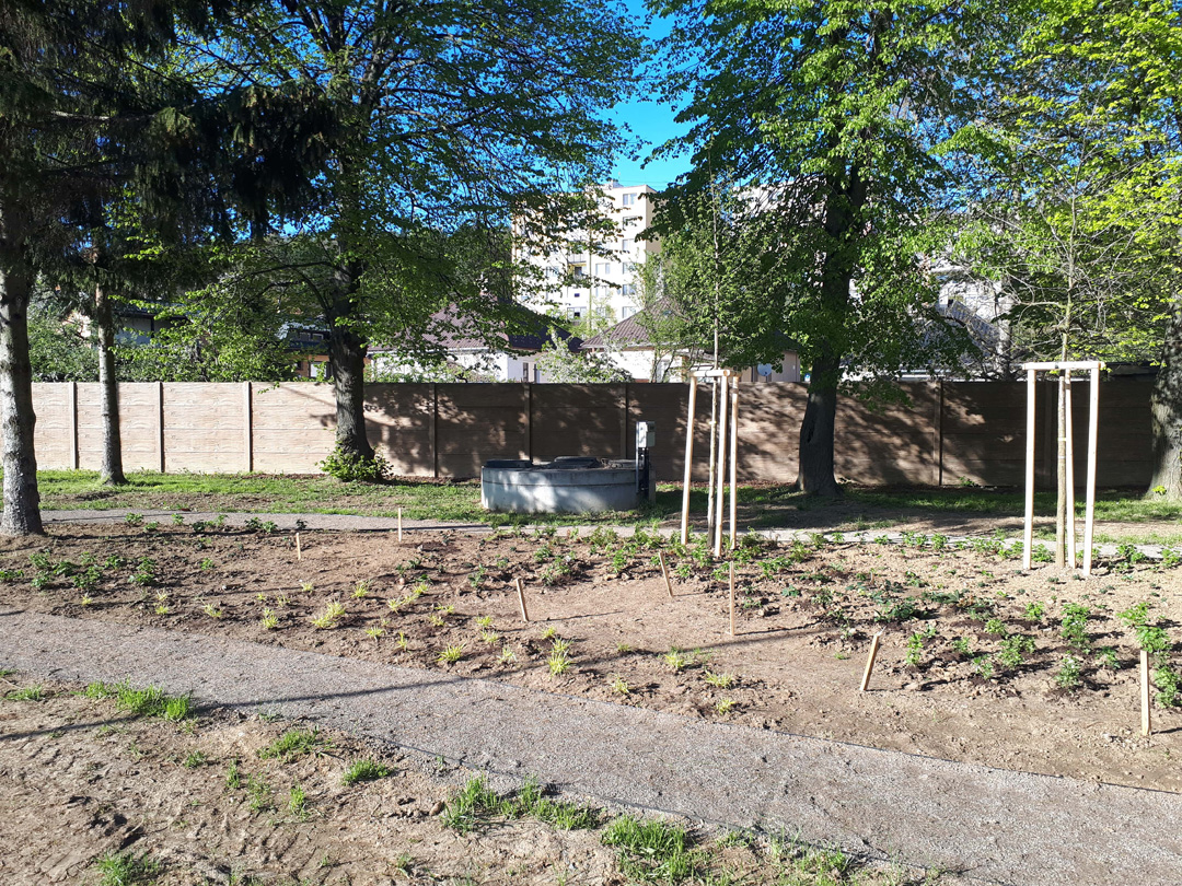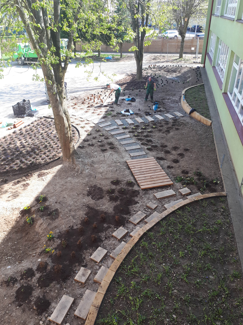 Zrevitalizovali sme 1 083 m2 areálu školského dvora a vysadili sme: