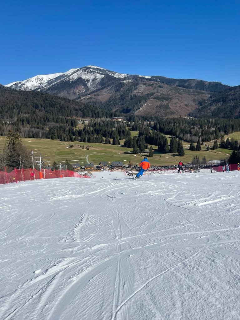 Po príchode do strediska nás okrem krásneho počasia čakali perfektne pripravené zjazdovky rozdelené podľa náročnosti pre začiatočníkov aj pre tých skúsenejších. Samotný výcvik bol rozdelený na praktickú a teoretickú časť. Počas praktickej časti výcviku si lyžiari-začiatočníci osvojovali základy lyžiarskej techniky. Cieľom pokročilých lyžiarov bolo zdokonaľovať svoju lyžiarsku techniku až ku carvingovému oblúku. Táto časť výcviku vyvrcholila slalomovými pretekmi na špičkovej trati, ktorú nám postavili zamestnanci lyžiarskeho strediska. Oddýchli si pri teoretických prednáškach, ktoré zahŕňali poznatky z oblasti lyžiarskej techniky, športov, či pravidiel správania sa lyžiara na svahu. Vo voľnom čase sa siedmaci venovali relaxu, spoločenským hrám ako aj zábave na diskotéke, ktorú im pripravili samotní učitelia.