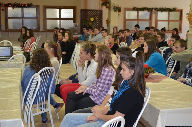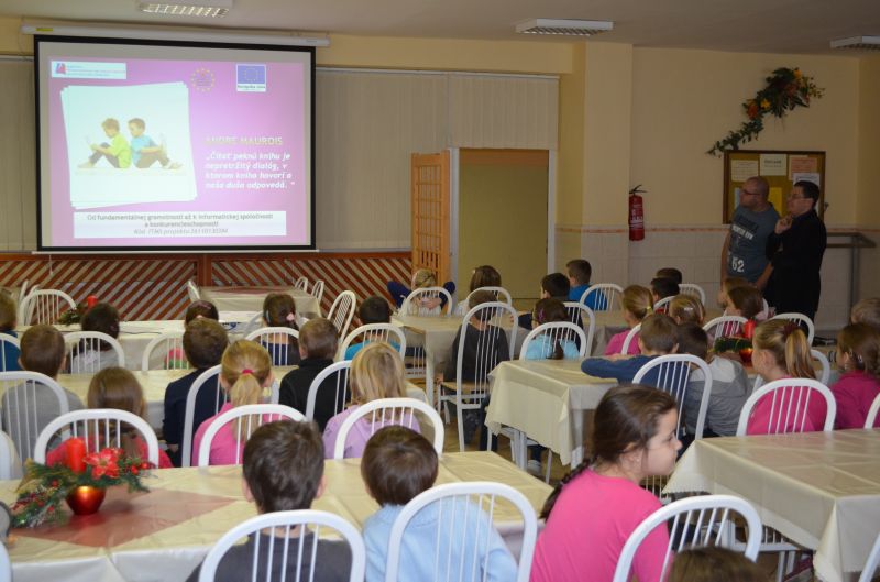 Ešte v júni 2012 sme začali realizovať projekt Od fundamentálnej gramotnosti až k informatickej spoločnosti a konkurencieschopnosti. O jeho cieľoch a prínose pre školu postupne oboznamujeme žiakov a širokú verejnosť na poradách, rodičovských združeniach, v regionálnej a školskej tlači. Jedným zo spôsobov sú aj besedy pre žiakov. Prvú sériu sme uskutočnili v septembri, dňa 13.12.2012 prišla na rad druhá.